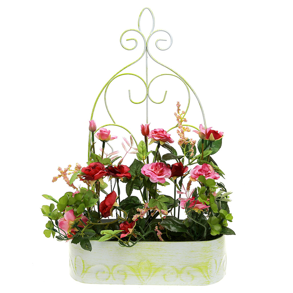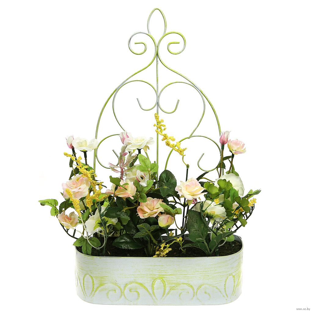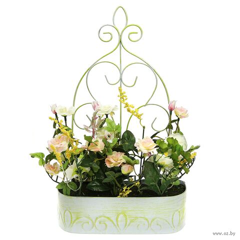 Цветочная композиция "Розы", в металлическом кашпо (25х8,5 см).