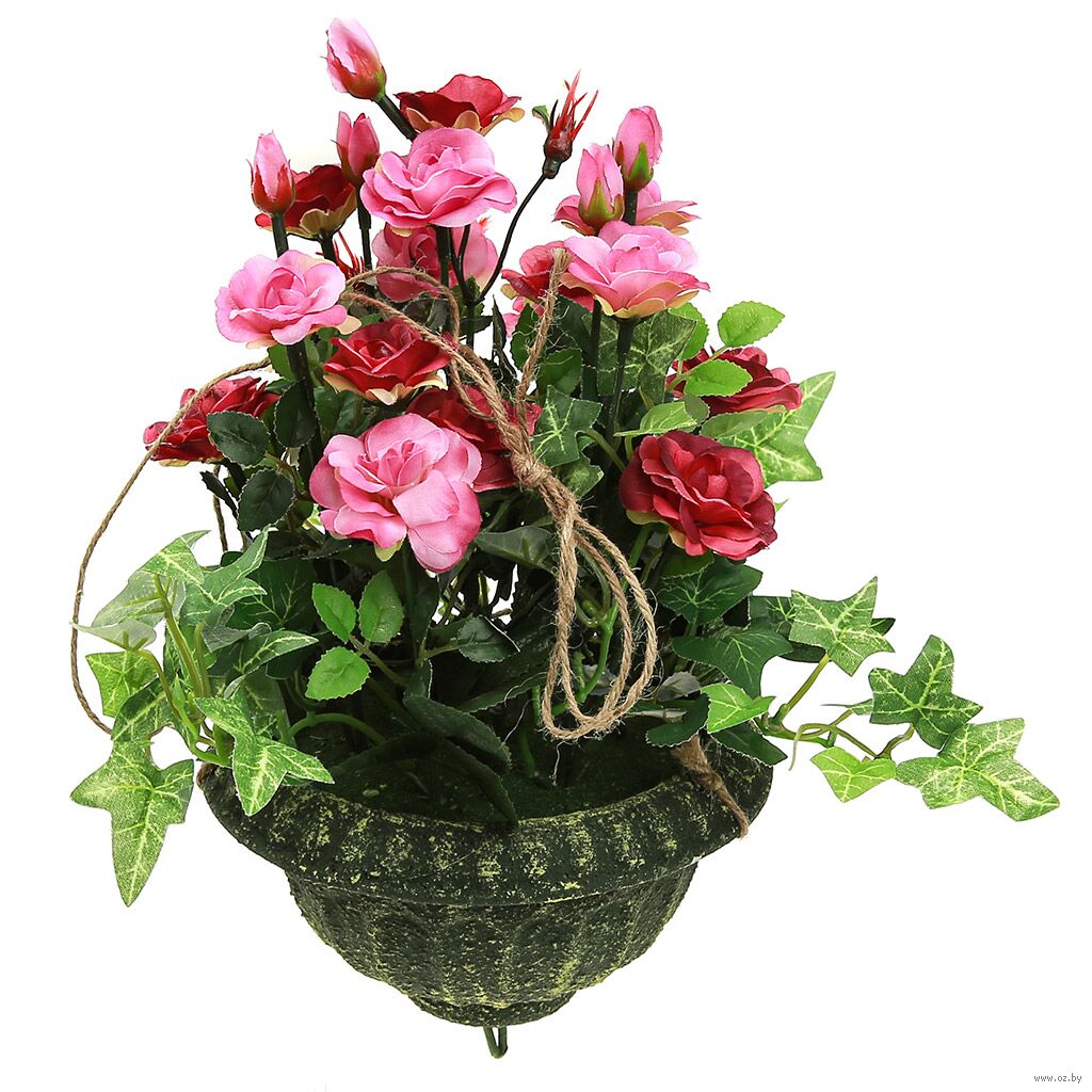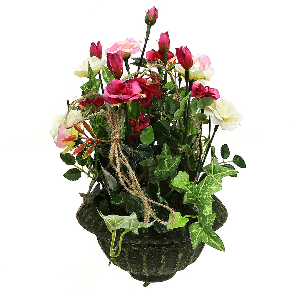 Цветочная композиция "Розы", в пластмассовом кашпо (16,5х9 см).