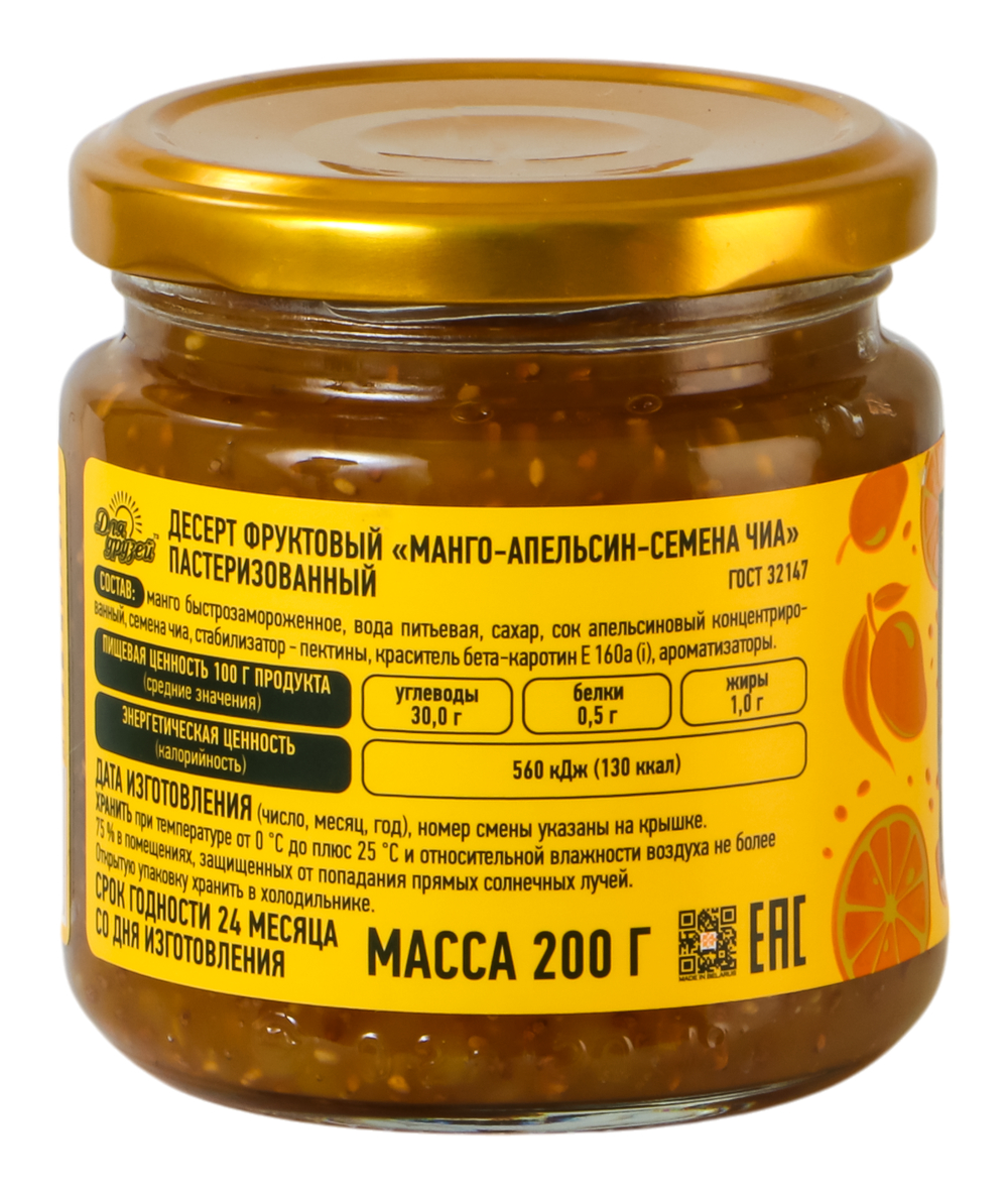 Десерт фруктовый "Манго-апельсин-семена чиа".