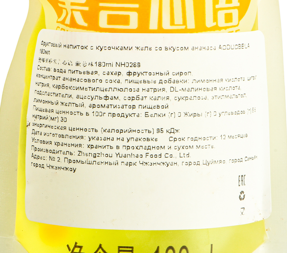 Фруктовый напиток с кусочками желе со вкусом ананаса.