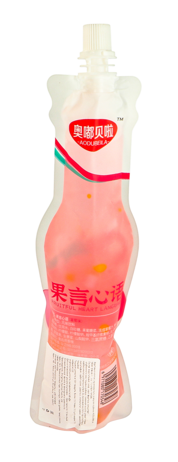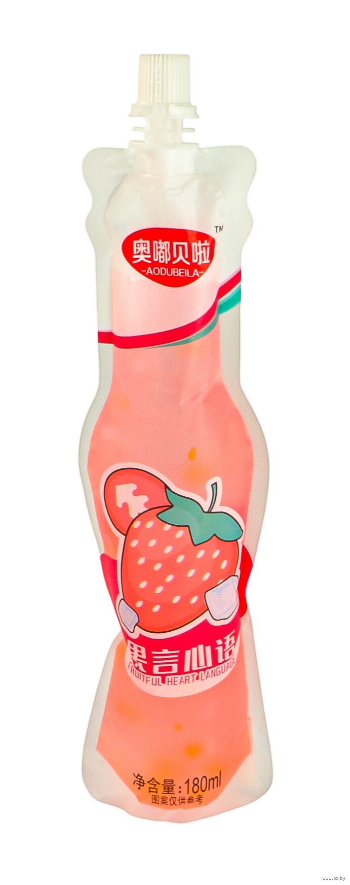 Фруктовый напиток с кусочками желе со вкусом клубники.