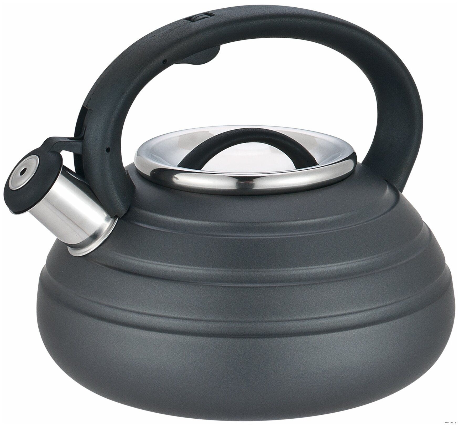 Чайник изготовлен из высококачественной нержавеющей стали. Изделия из нержавеющей стали не окисляются и не впитывают запахи, благодаря чему вы всегда получите натуральный, насыщенный вкус и аромат напитков. Индукционное дно обеспечивает наилучшее распределение тепла. Удобная не нагревающаяся ручка из бакелита. Курковой механизм открывания носика предотвращает от ожогов. Данная модель оснащена свистком, который позволяет контролировать процесс кипячения и подогрева воды. Эстетичный и функциональный, с классическим дизайном, чайник будет прекрасно смотреться на любой кухне. Подходит для использования на всех типах плит, включая индукционные.