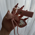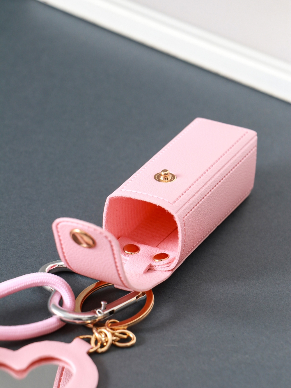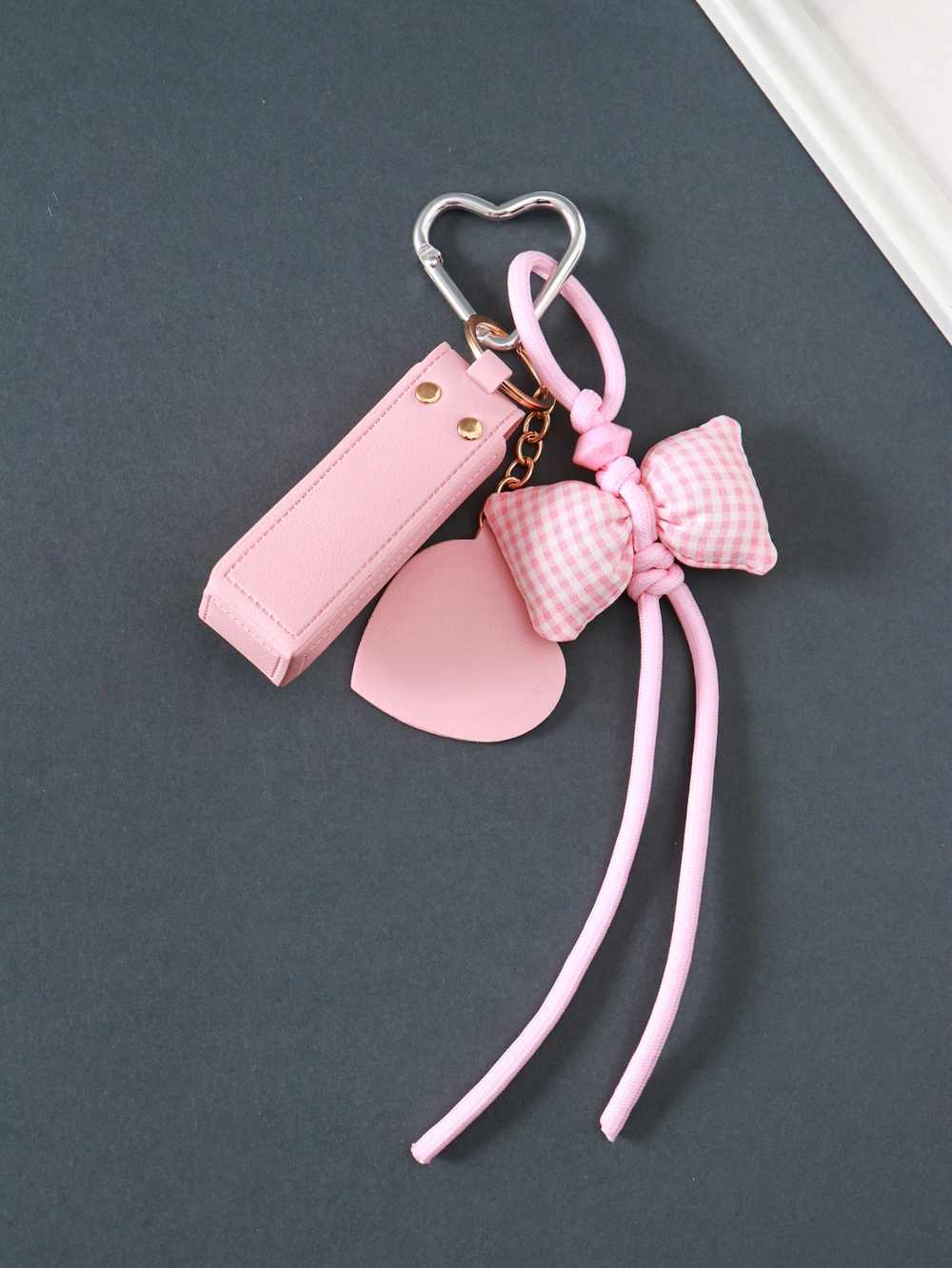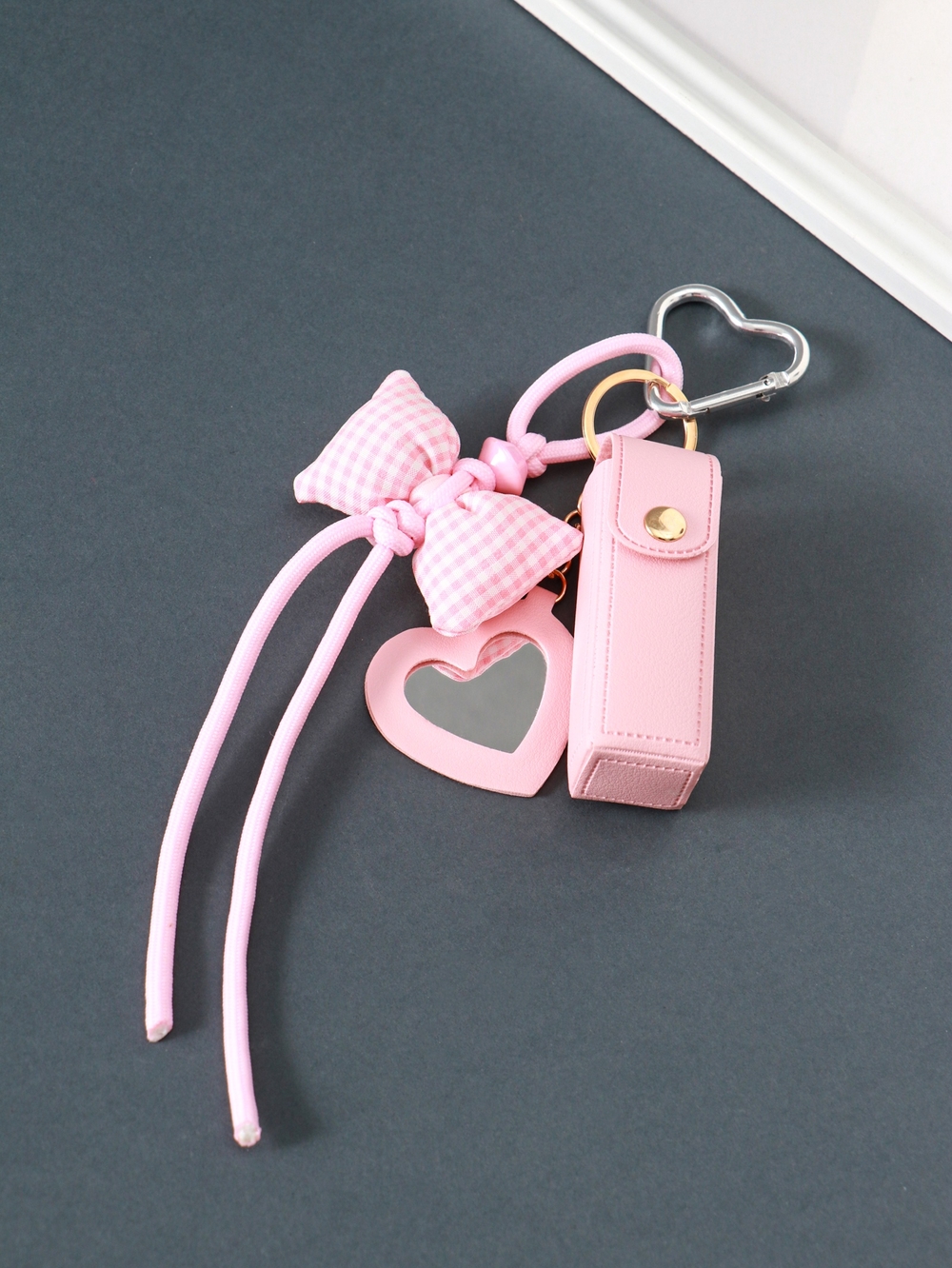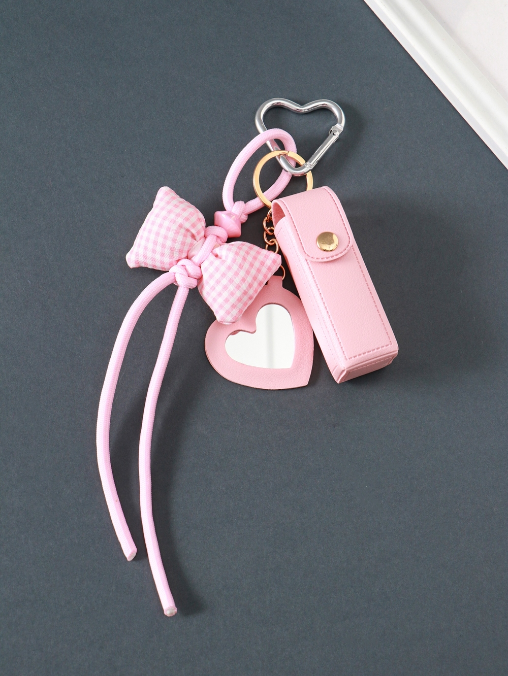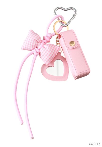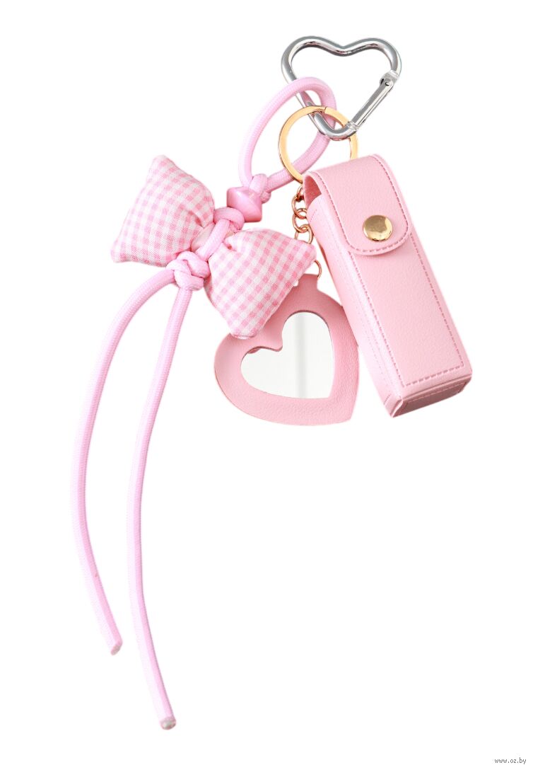Брелок для ключей на кольце с карабином, с зеркалом "Для помады. Бант", кожзам.