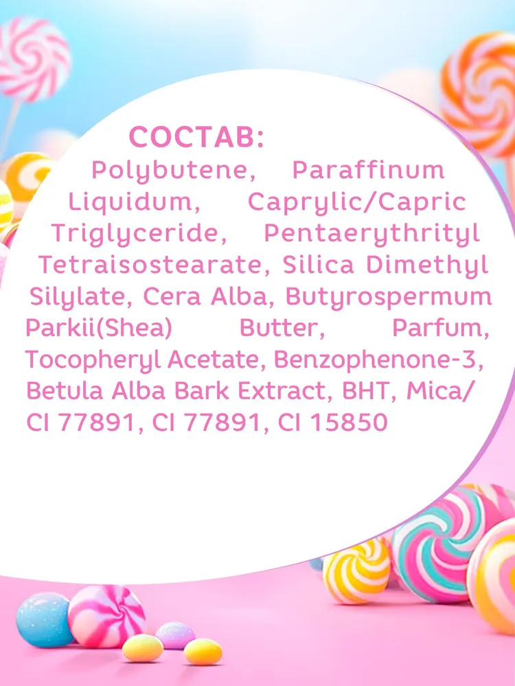 Polybutene, Paraffinum Liquidum, Caprylic/Capric, Triglyceride, Pentaerythrityl Tetraisostearate, Silica dimethyl silylate, Cera Alba, Butyrospermum parkii(shea) butter, Parfum, Tocopheryl Acetate, BENZOPHENONE-3, Betula Alba Bark Extract, BHT, Mica/ CI 77891, CI 77891, CI 15850.Мы используем файлы cookie для обеспечения удобства работы с сайтом и его контакта с пользователем.
