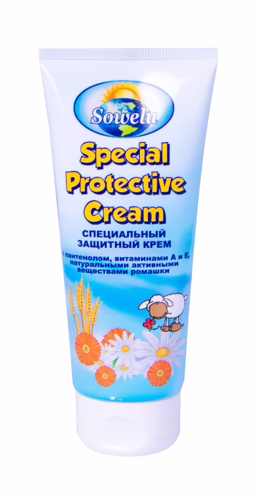 Защитный крем содержит специальную комбинацию активных веществ, которые способствуют естественной регенерации поврежденной кожи, интенсивно защищают от сухости. Входящие в состав крема витамины А и Е смягчают кожу, защищают от воздействия UV-лучей. Крем идеально подходит для взрослых.