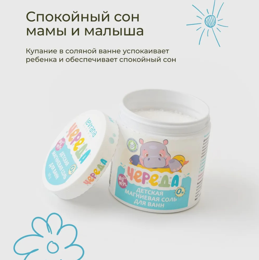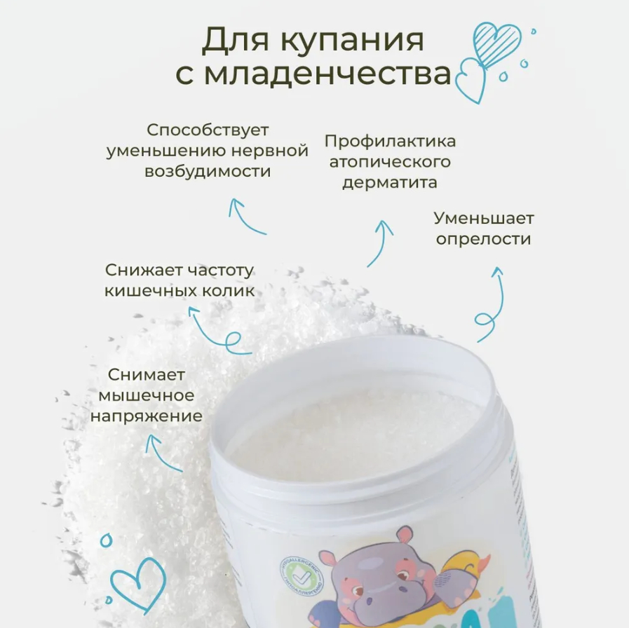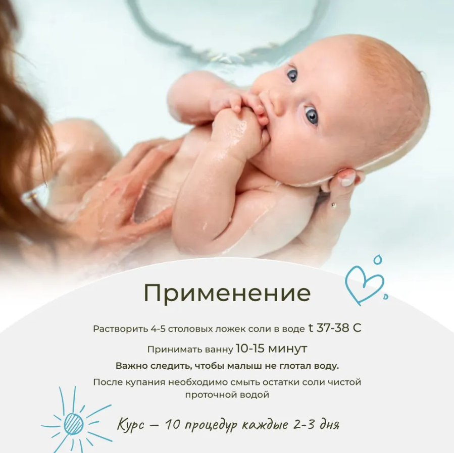 Английская магниевая соль рекомендована для купания с младенчества. Минерал снижает нервное и мышечное напряжение, возбудимость, положительно влияет на состояние нежной кожи малыша. Купание в соляной ванне успокаивает ребенка и обеспечивает спокойный сон.