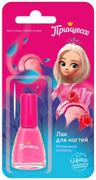 Лак с нежным малиновым оттенком легко наносится и быстро сохнет. Небьющийся стеклянный флакон оснащен удобной узкой и ровной кисточкой, состав разработан специально для девочек, не содержит таулола и формальдегида.