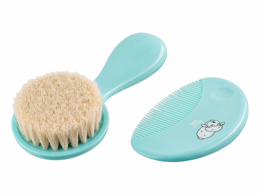 Расческа-щетка с мягким ворсом из натуральной овечьей шерсти и удобный гребешок предназначены для малышей и новорожденных.