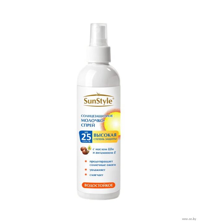 Молочко-спрей солнцезащитное SPF-25 UV (A+B) водостойкое 125 мл. Молочко-спрей имеет нежную консистенцию, легко распределяется на коже, водостойкое.