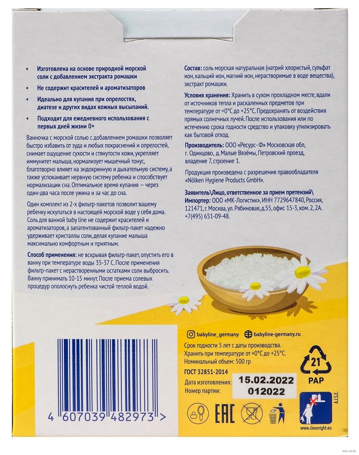 Соль для ванн детская "Baby Line. Детская с ромашкой" (500 г)
