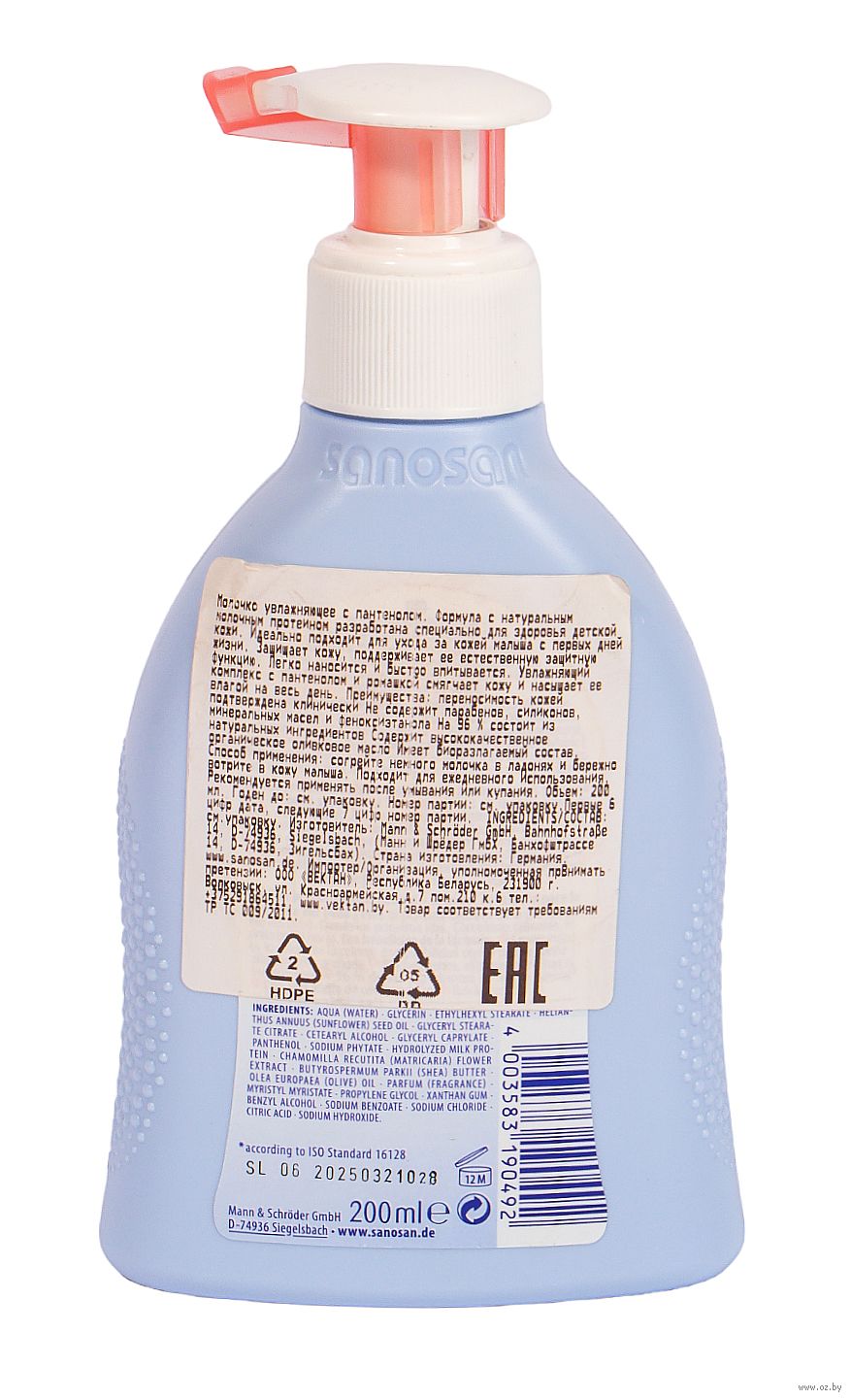 Увлажняющее молочко "Sanosan Baby" предназначено для детей с первых дней жизни.