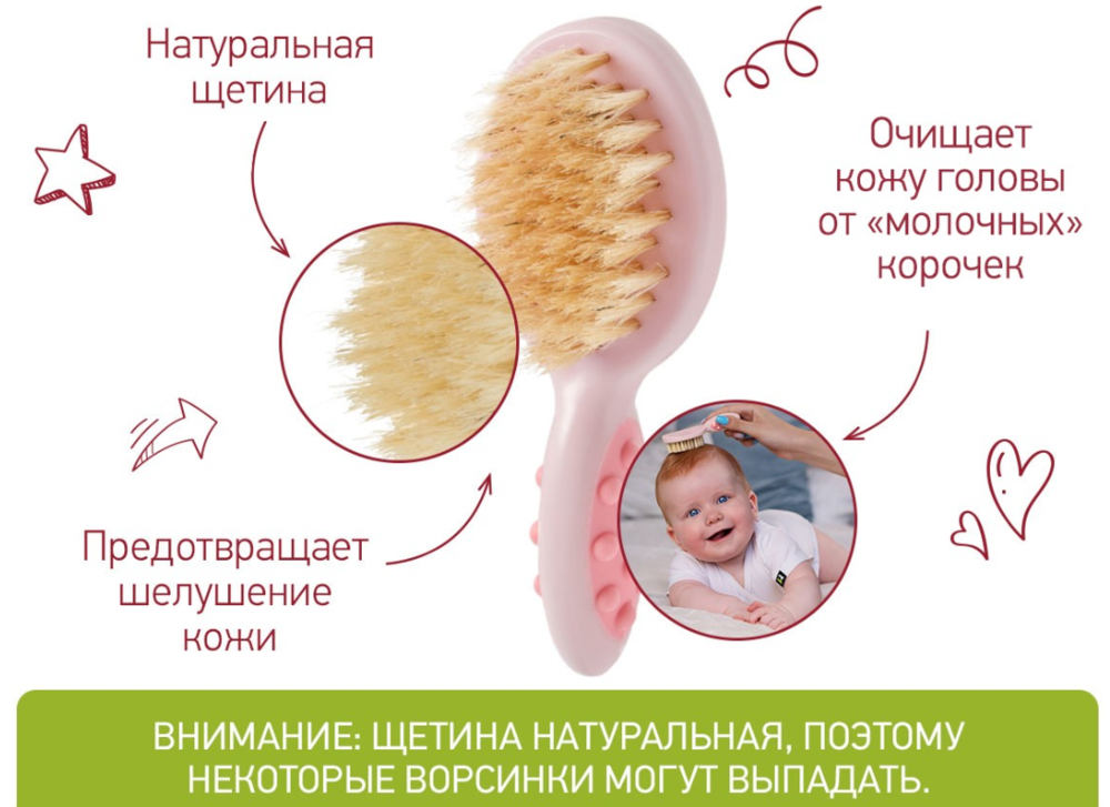 Расческа с натуральной щетиной и расческой-гребешком Roxy-Kids позволит наиболее комфортно ухаживать за волосами и кожей головы малыша.