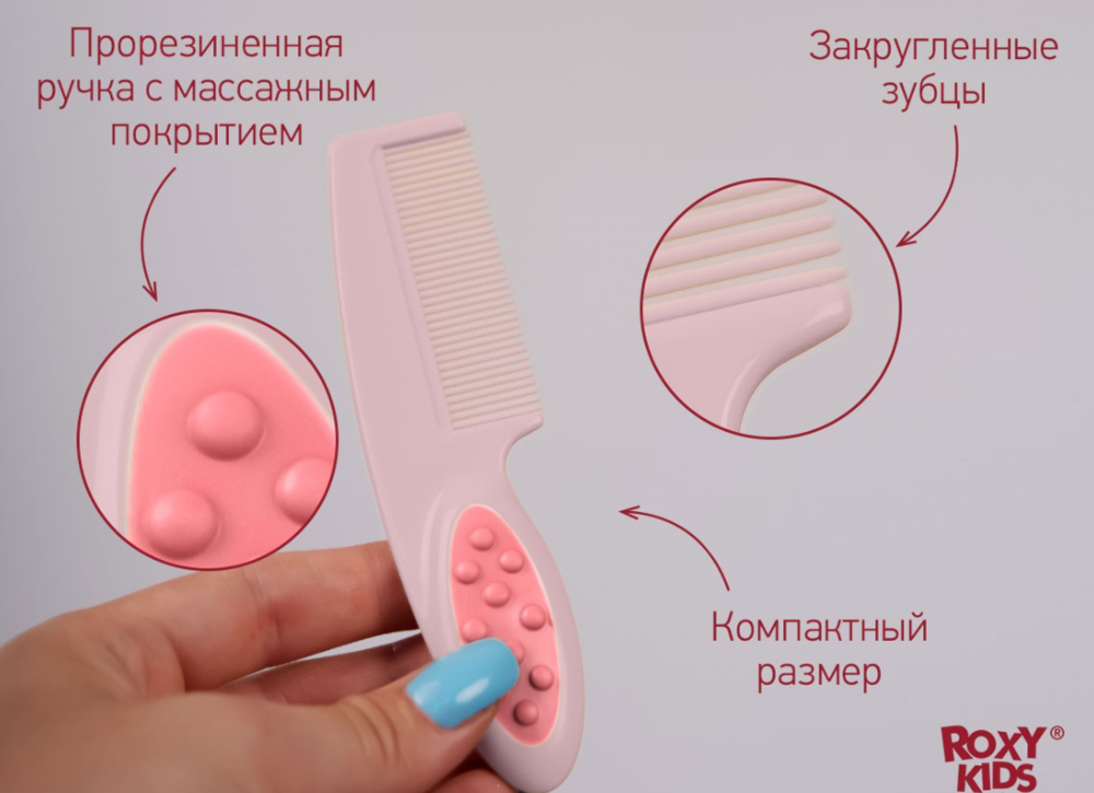 Специальные детские расчески Roxy-Kids не травмируют нежную кожу и бережно воздействуют на мягкие ткани детской головки, стимулируя при этом рост новых волос. Малыш останется доволен, а родители смогут получить максимум радости от тактильного общения со своим малышом.