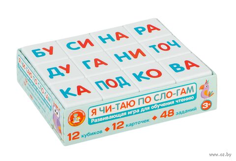 Развивающие кубики для умников "Я чи-таю по сло-гам" – это 12 кубиков белого цвета со слогами, из которых можно составлять простые слова.