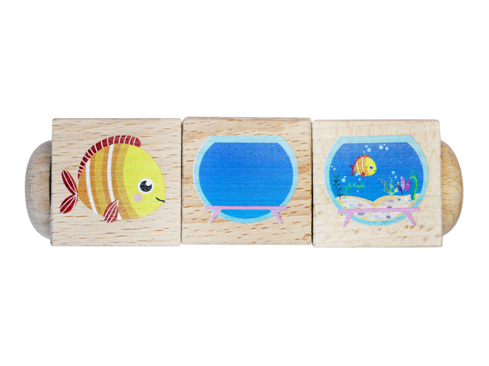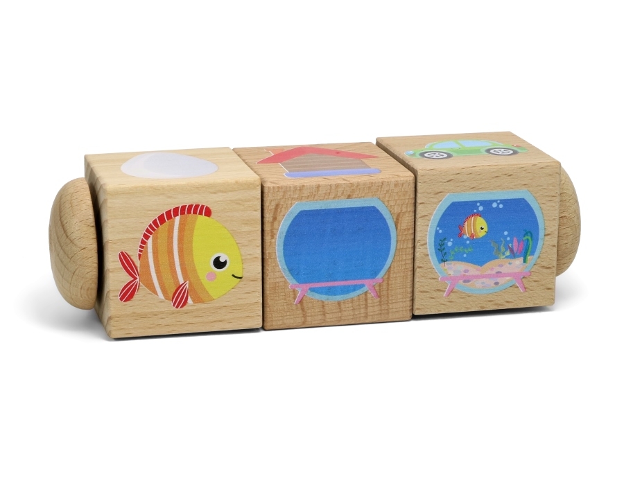 Тренируйте мелкую моторику, развивайте логику и мышление вместе с Кубиками деревянными на оси «Часть и целое» (3 кубика). Поворачивая кубики, ребёнок тренирует мелкую моторику рук и учится обобщать отдельные части определённого предмета в целое.
