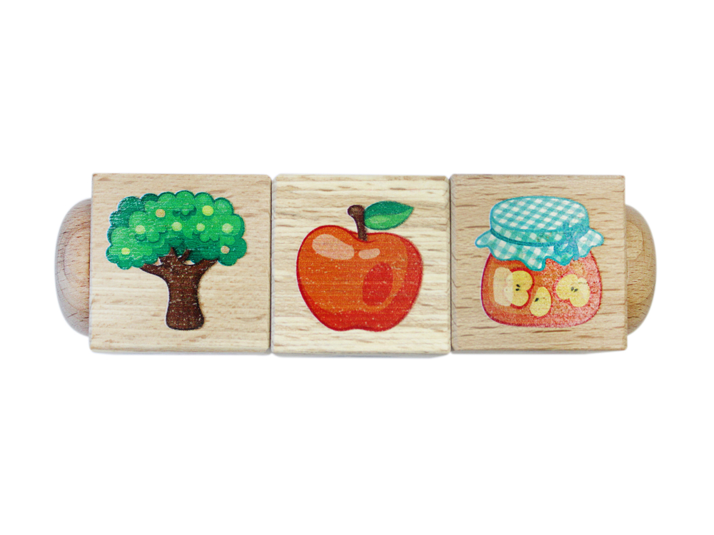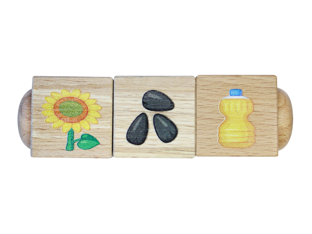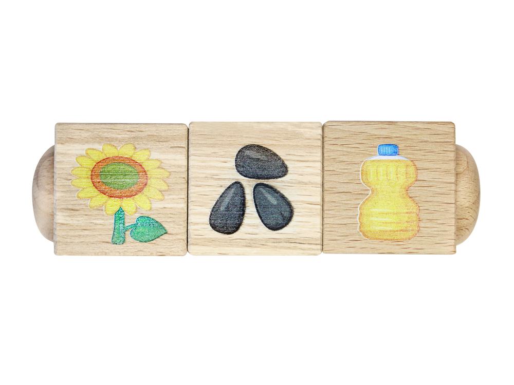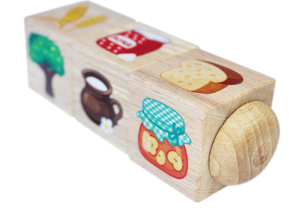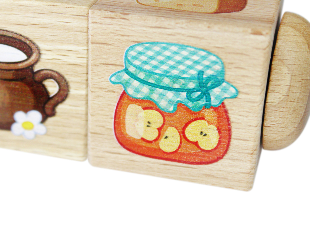Деревянные кубики на оси «Что за чем следует» для детей от 3-х лет изготавливаются из экологического материала – массива дерева. Изображения наносятся на кубик с применением технологии прямой печати, что обеспечивает износостойкость игрушки.