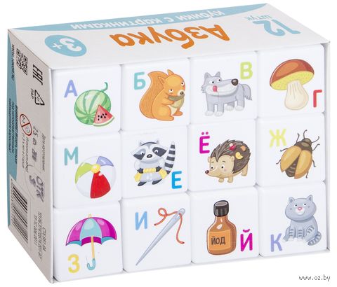 Кубики изготовлены из прочного пластика. Углы закруглены. Картинки и буквы нарисованы качественно, не стираются. На кубиках изображены следующие картинки: арбуз, белка, волк, гриб, дельфин, енот, ёж, жук, зонт, игла, йод, кот, лягушка, мяч, носок, орех, пингвин, ракета, слон, тигр, улитка, фонарик, хлеб, цветок, черепаха, воздушный шарик, зубная щётка, экскаватор, юла, яблоко. Буквы ь, ы, ъ изображены на белом фоне без картинок. Сторона кубика - 4 см, что очень удобно для маленьких детских ручек. Ребёнку нравятся, покупкой довольны!