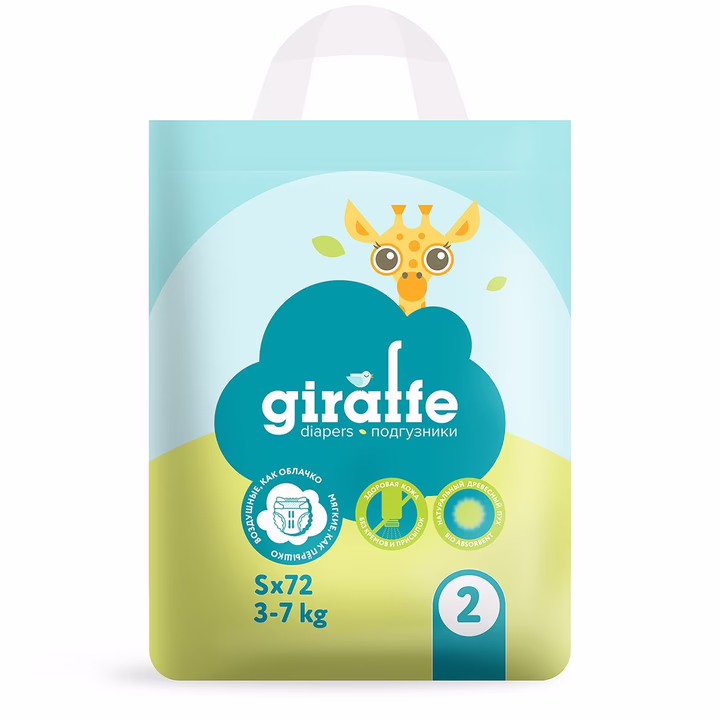 Подгузники легендарной серии Giraffe – это практичность, безопасность и высокий уровень комфорта для малыша. Подгузники предлагают всё самое необходимое – моментальную впитываемость и удержание большого количества жидкости, максимальный комфорт и безопасность. Мельчайшие кристаллы Waterlock впитывают большое количество жидкости даже под давлением массы тела, когда малыш лежит или сидит.