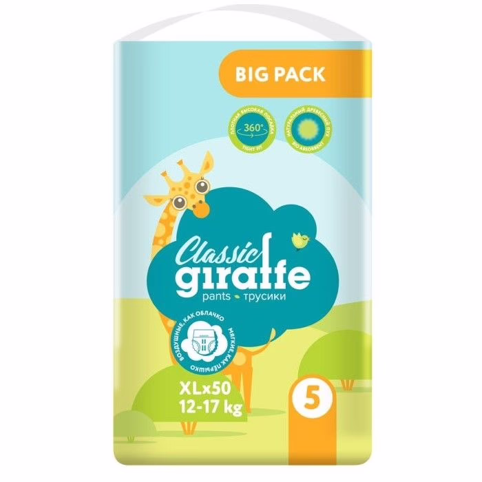 Подгузники полюбившейся серии Giraffe Classic – это надежность для мамы, безопасность и высокий уровень комфорта для малыша.