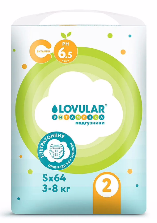 Подгузники "Lovular. Витаминка" (3-8 кг; 64 шт.)