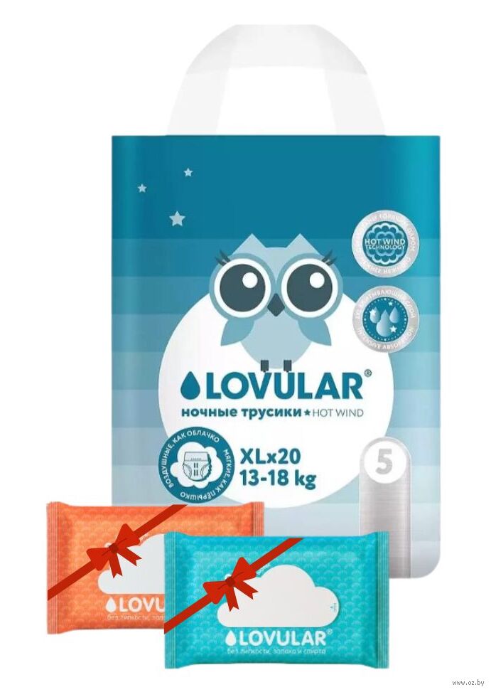 Подгузники-трусики "Lovular. Hot Wind" (13-18 кг; 20 шт.; + влажные салфетки)