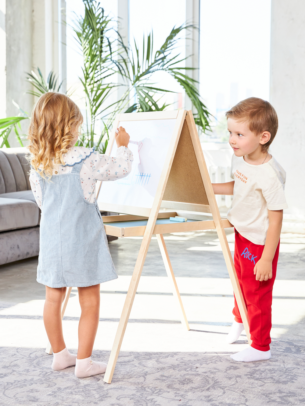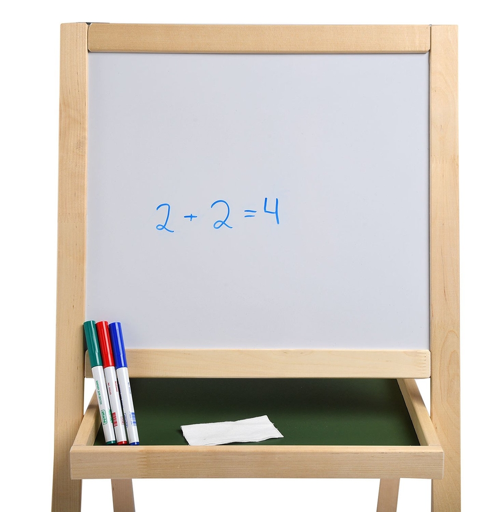Заниматься на магнитно-маркерном мольберте гораздо удобнее, чем на обычной доске, поэтому ребенок охотнее будет рисовать на нем или играть в обучающие игры. После игры мольберт легко складывается и экономит место в детской комнате.