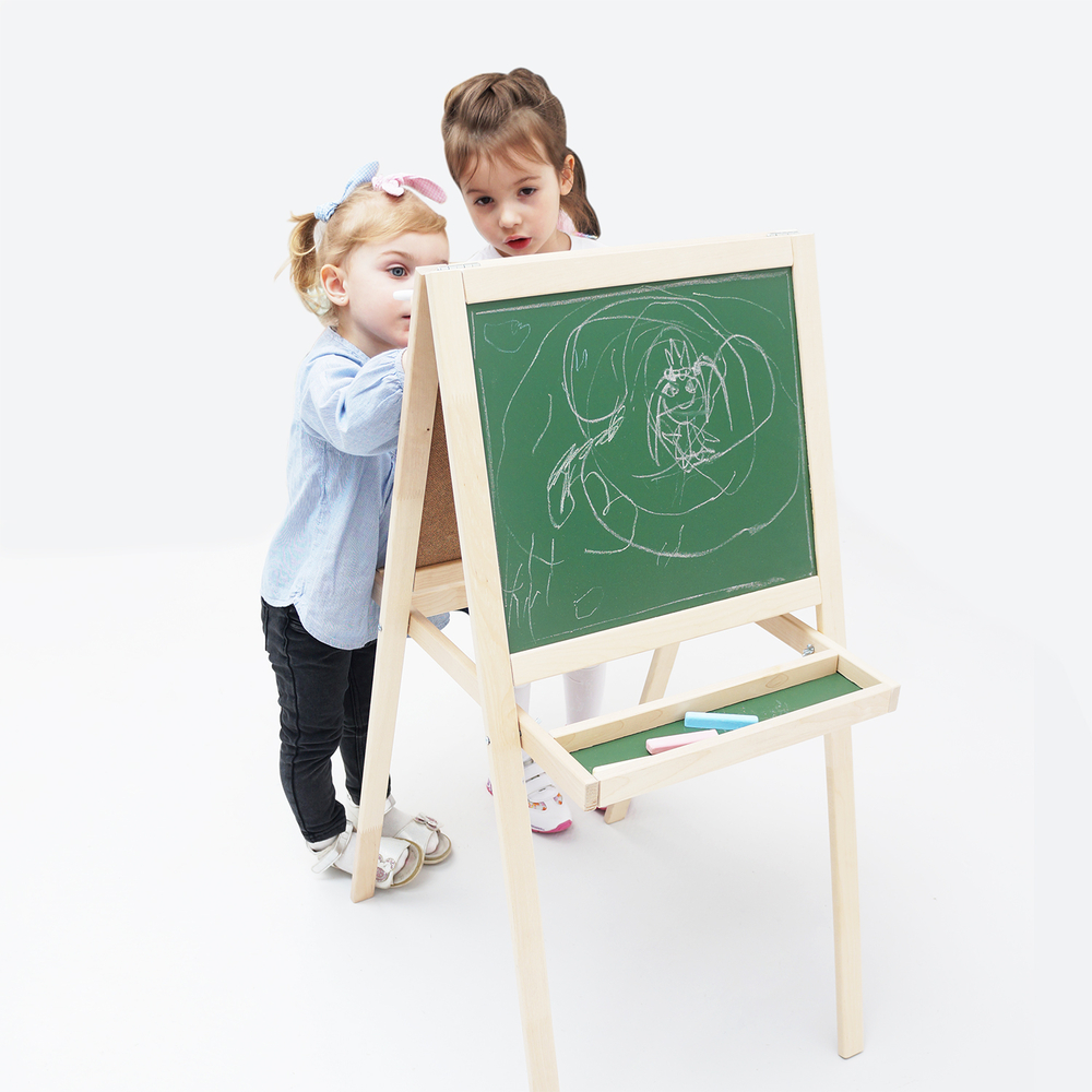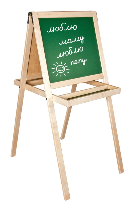 Мольберт может использоваться для письма и рисования, для этого он имеет двухстороннее комбинированное покрытие: