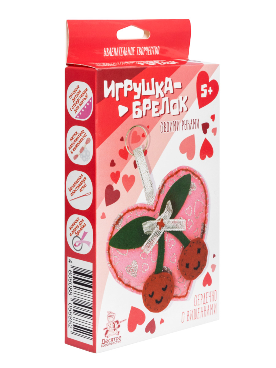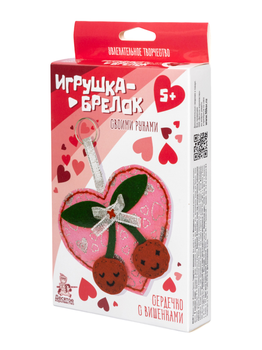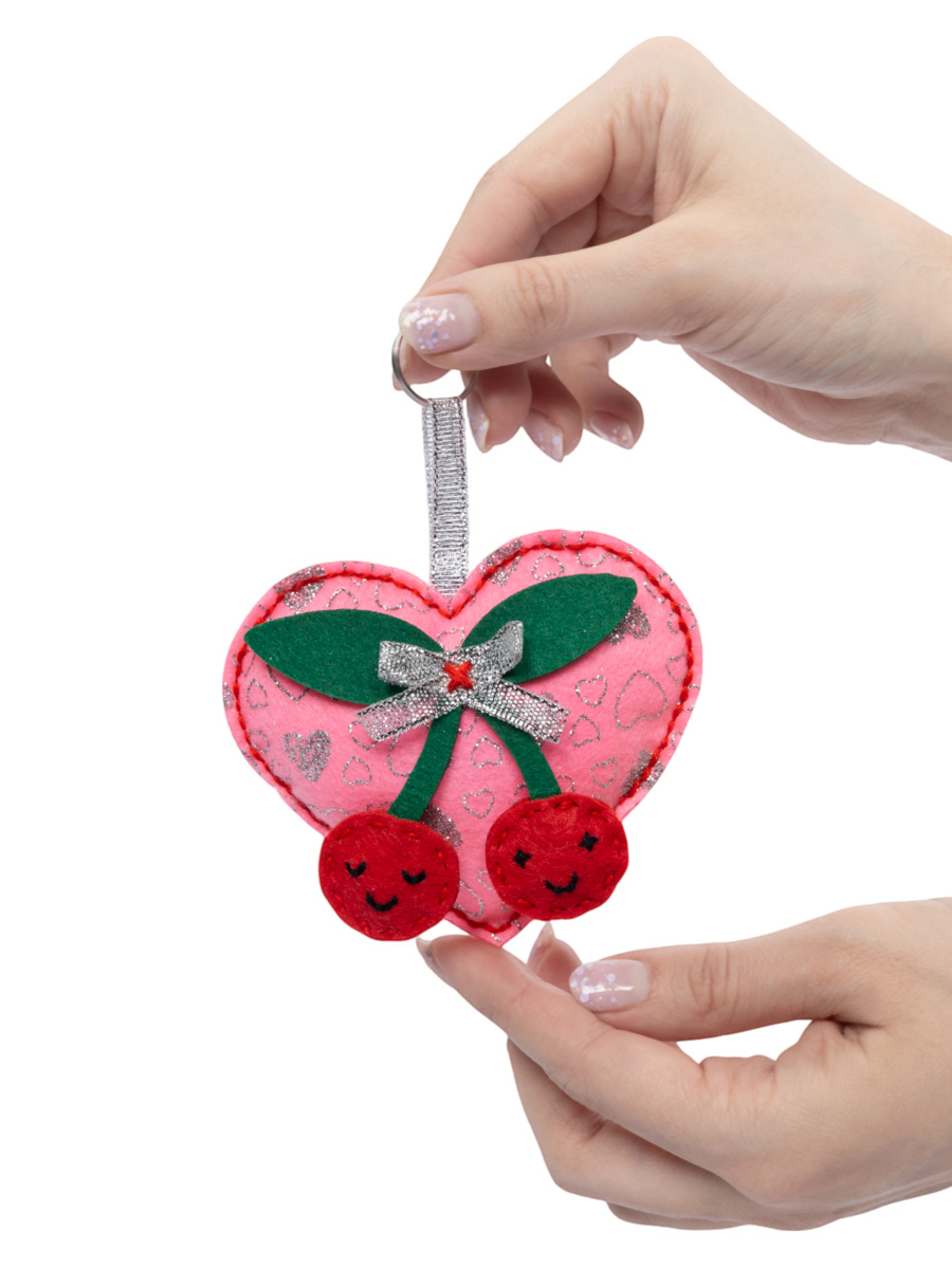 Игрушка брелок своими руками "Сердечко с вишенками" .