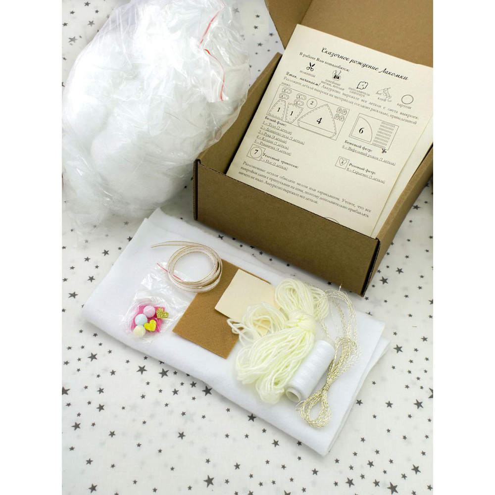 В набор для самостоятельного создания куклы входит все необходимое: флис, фетр, пряжа, помпошки, ленты, фоамирановые сердечки, синтепух, выкройки, инструкция.