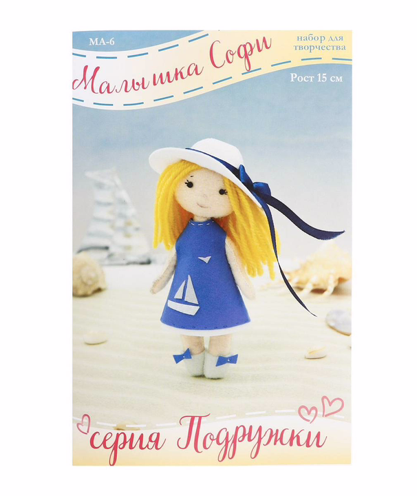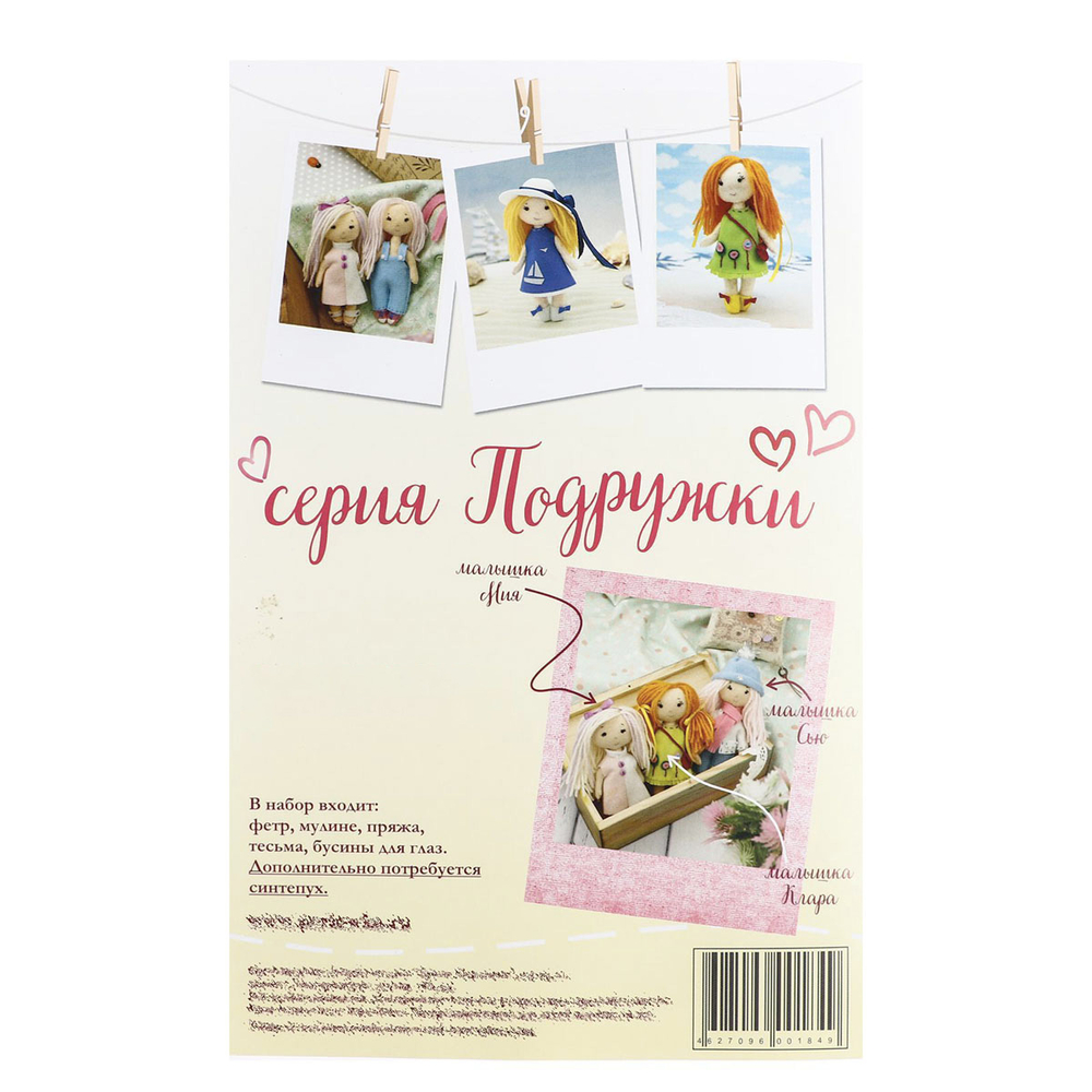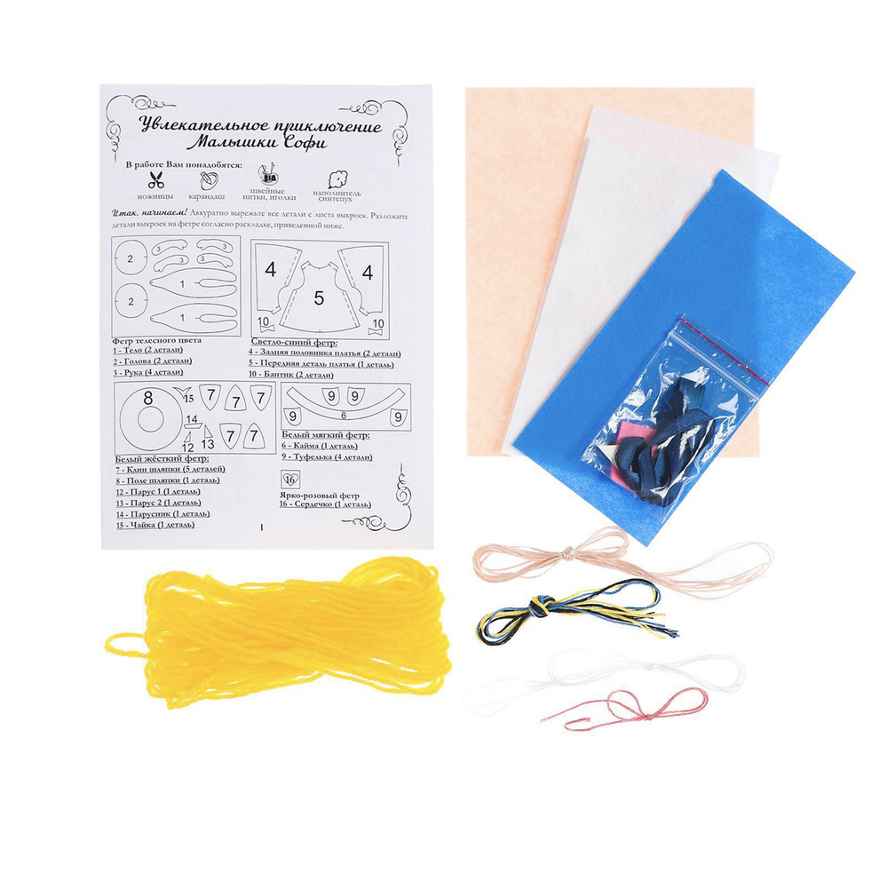 В набор входят: фетр, пряжа, мулине, бусины для глаз, тесьма, выкройки и инструкция.