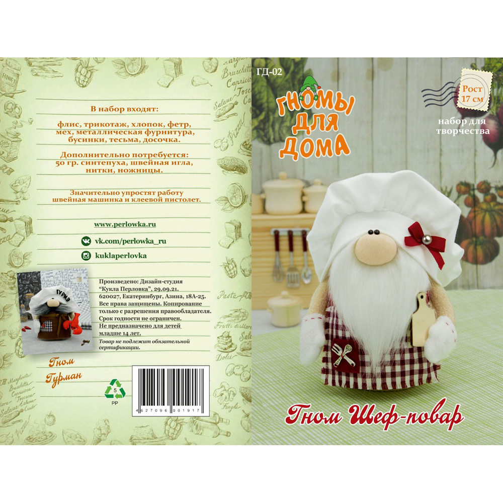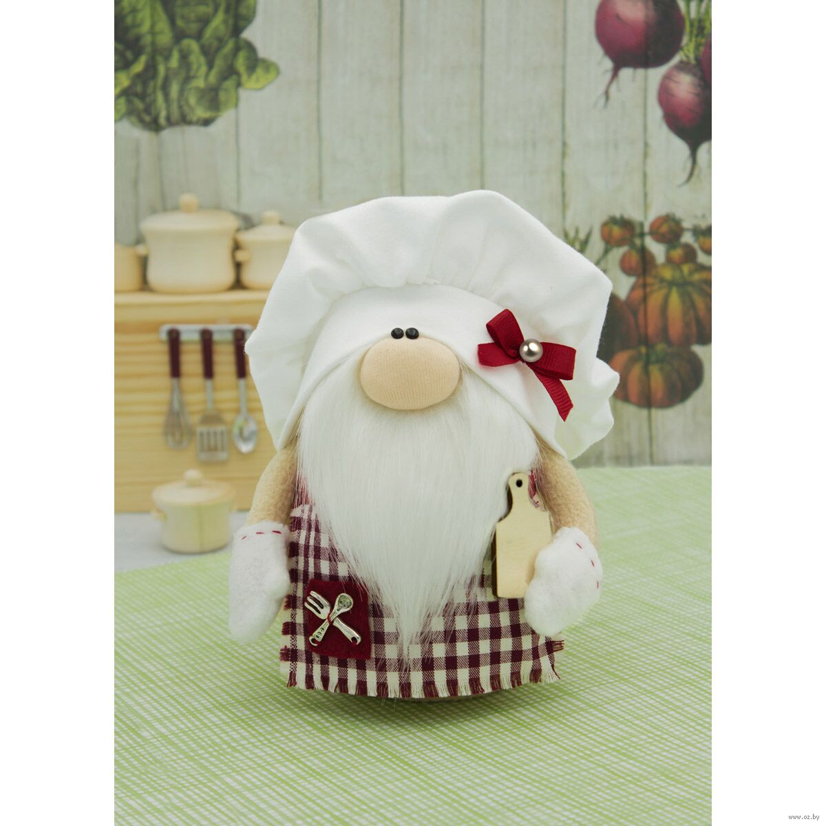 Мягкие игрушки серии "Гномы для дома" напоминают персонажей мультфильмов.Украсьте игрушкой "Гном шеф-повар" интерьер, и она поможет вам создать веселую, беззаботную атмосферу, будет напоминать о счастливом детстве.