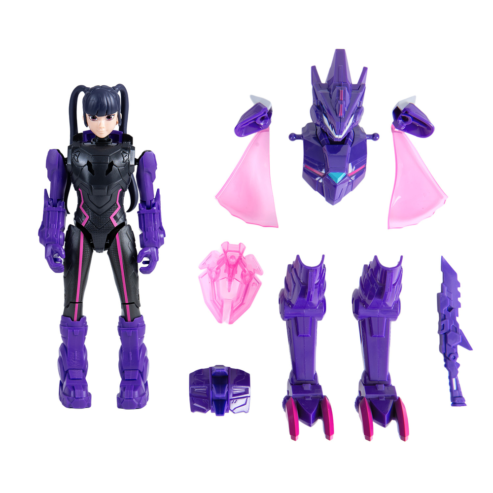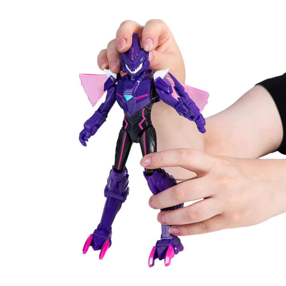 Фигурка Трины высотой 20 см имеет 2 формы игры: в Дино-костюме и без него. Дино-костюм позволяет становиться быстрее и сильнее. Надень и активируй Дино-костюм с помощью дополнительных элементов брони. Мозазавр-трансформация! Электрошок!