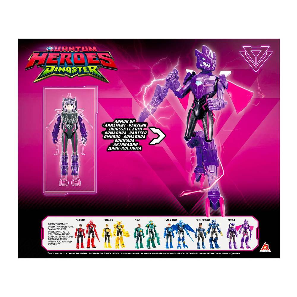 Трина: бывшая помощница Бекса Хантера. Как только она поняла, что Векс использует ее в своих корыстных целях, она перешла на сторону команды Диностер и теперь вместе с ними сражается против него!