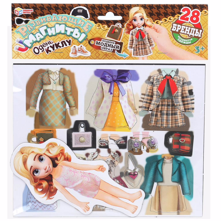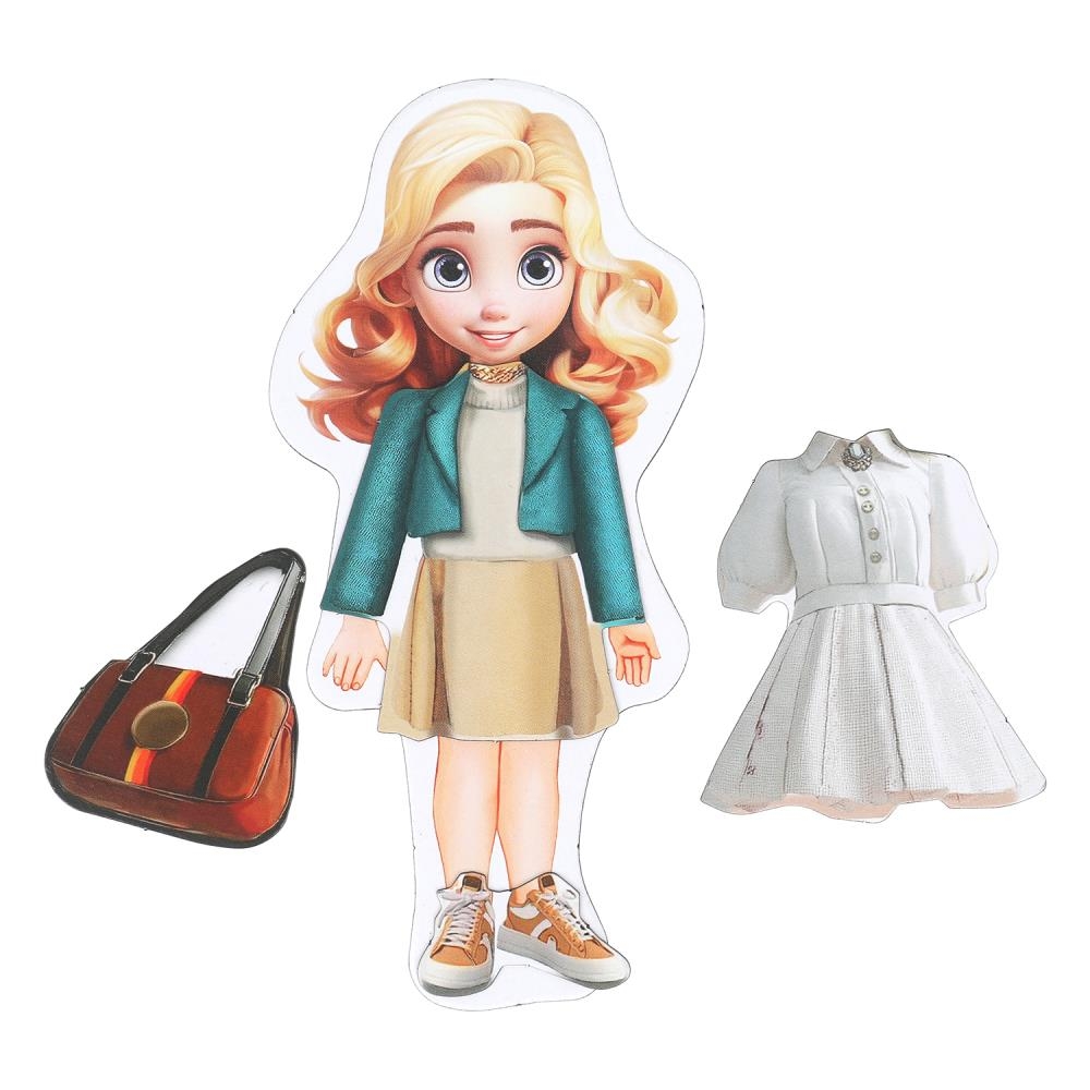 Наряды крепятся прямо к кукле: удобный крепёж магнитных элементов к основе из мягкого железа сделает игру приятнее и увлекательнее.