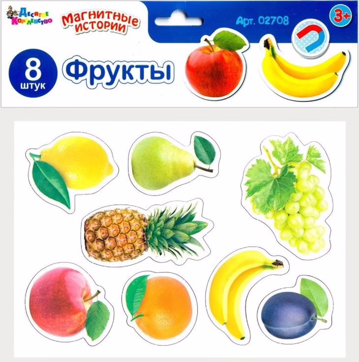 ребенку понравились. сам лист тоже магнит. очень удобно доставать и расклеивать по местам фрукты.