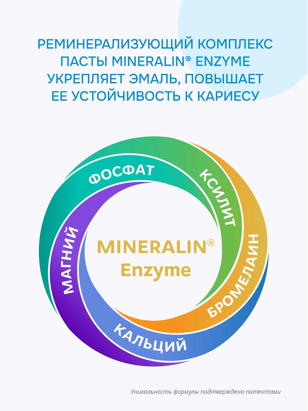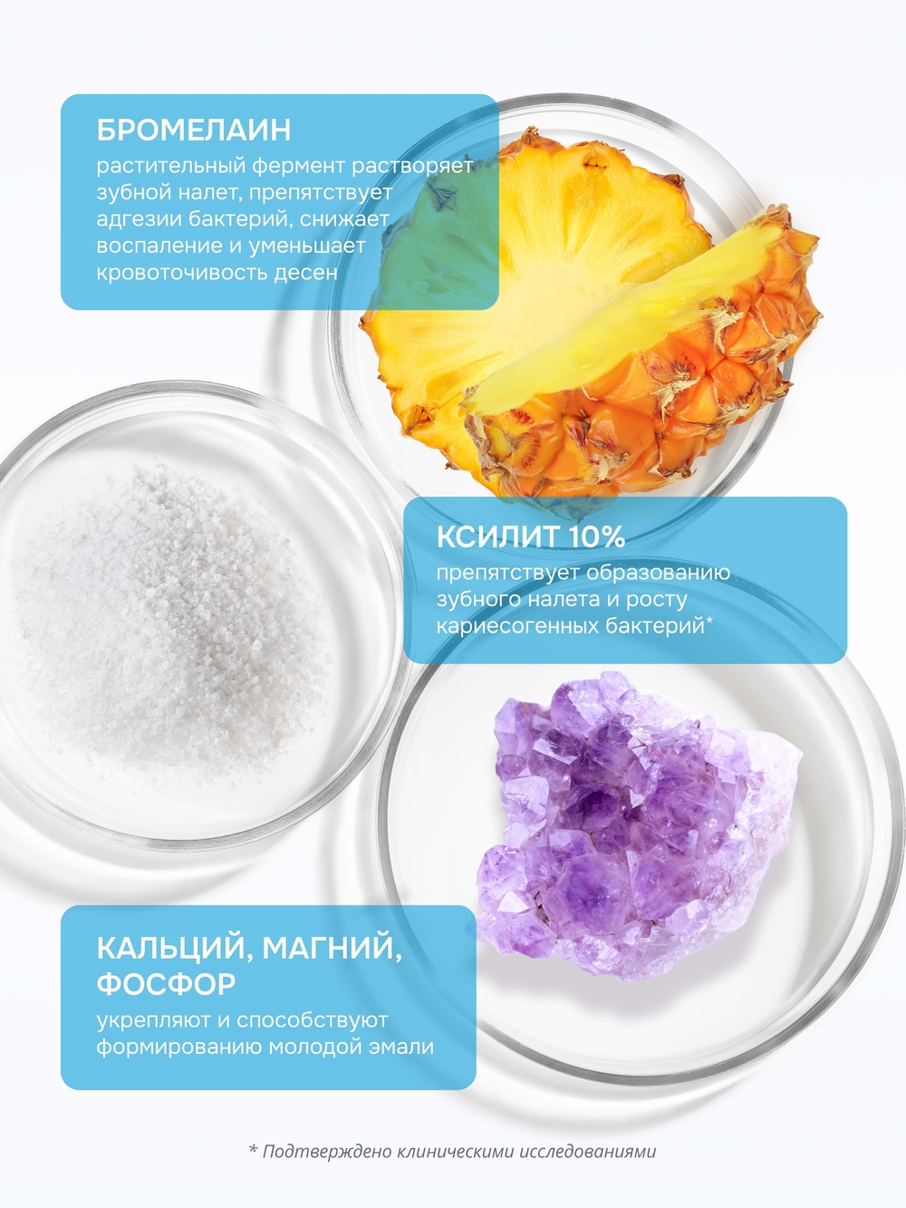 Зубная паста R.O.C.S.® PRO Junior обеспечивает эффективную защиту молочных и первых постоянных зубов от кариеса за счет сочетания биоактивных и минеральных компонентов. Растительный фермент растворяет зубной налет, препятствует адгезии бактерий, снижает воспаление и уменьшает кровоточивость десен. Ксилит 10% защищает от бактерий и нормализует состав микрофлоры*. Кальций, магний, фосфор укрепляют и способствуют формированию молодой эмали. Экстракт жимолости предотвращает воспаление десен.