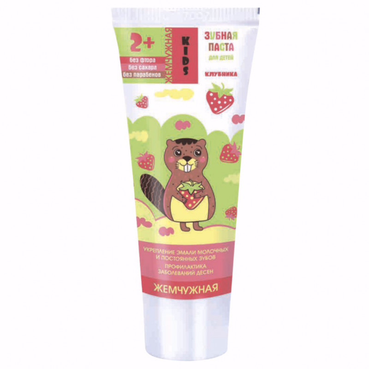 Паста зубная детская "Жемчужная Kids" со вкусом клубники для детей с 2 лет изготовлена на основе диоксида кремния – современного высококачественного абразива, который бережно очищает неокрепшие детские зубы.