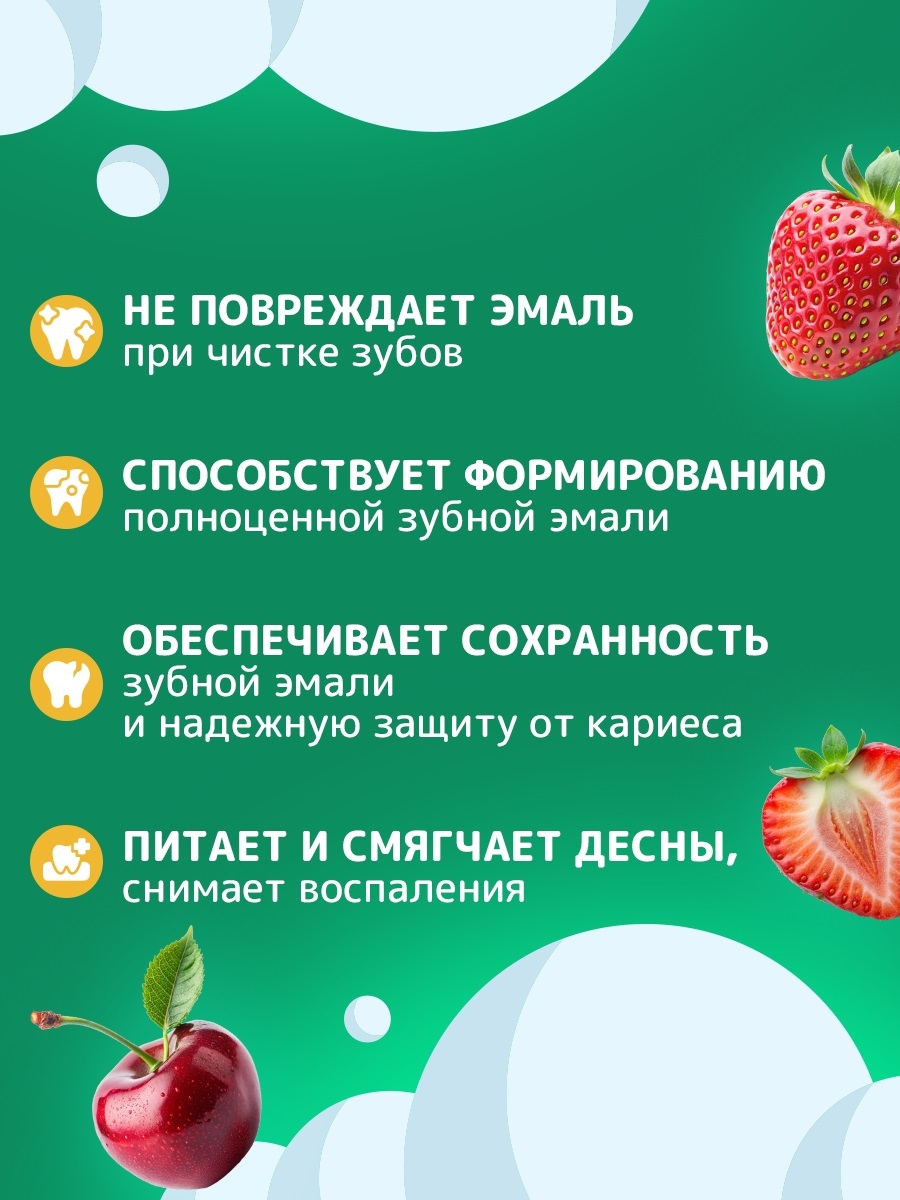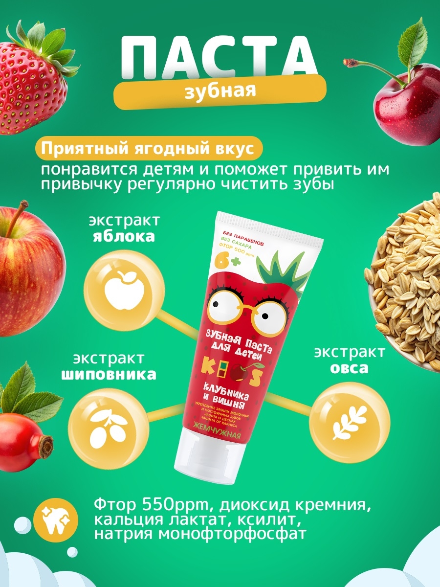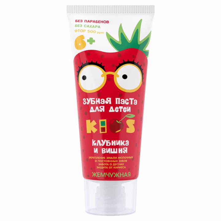 Детская зубная паста со вкусом "Клубника и вишня" для детей от 6 лет.