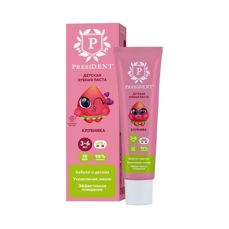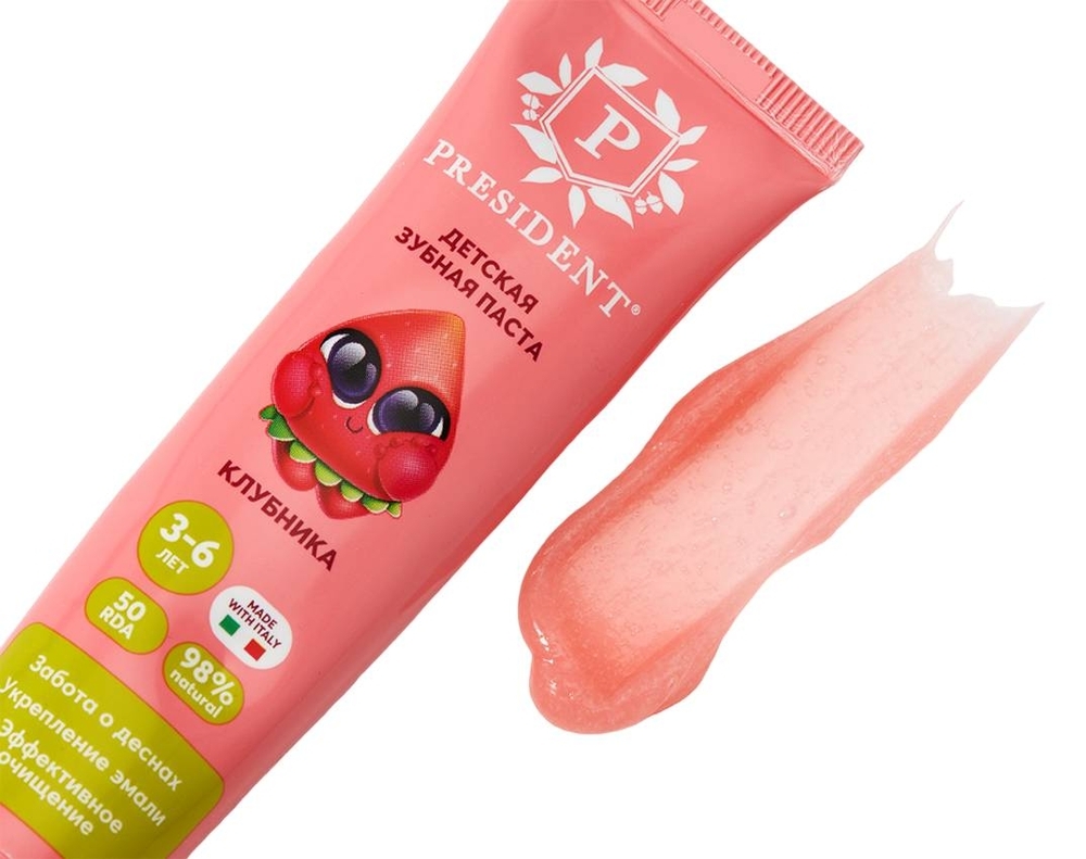 Зубная паста "Клубника" от 3 до 6 лет обеспечивает заботу о деснах, укрепление эмали и эффективное очищение.