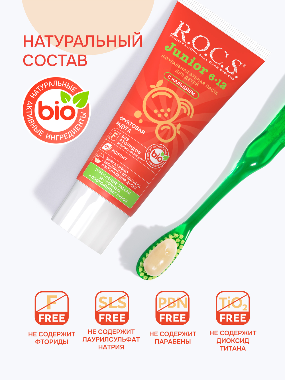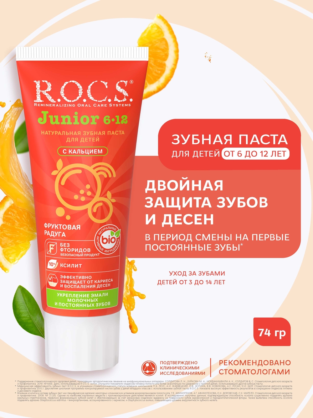 Зубная паста для детей R.O.C.S.® Junior. Фруктовая радуга.