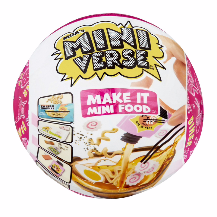 Впервые у тебя есть уникальная возможность не просто собрать игрушечные мини-версии известных блюд и напитков от бренда MGA's Miniverse, но и создать все это своими руками! Какой именно рецепт попадется тебе, ты узнаешь после того, как откроешь шар.