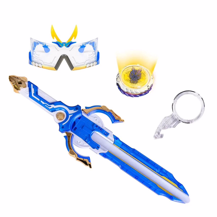 В нем собраны все атрибуты суперигрока: коллекционный меч Infinity Nado Адвансд 39 см в уникальном дизайне и боевые суперочки, как у Лина – главного героя мультсериала. Меч помогает точнее запустить блейд на арену. Это не только пусковая установка, но и монтажный инструмент.