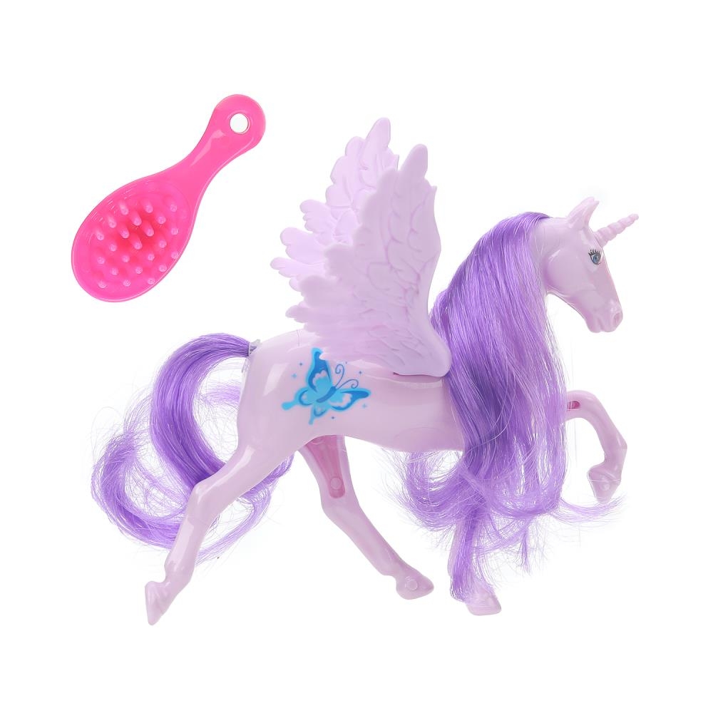 Этот интересный набор яркой расцветки непременно понравится вашей девочке и вдохновит её на увлекательные сюжеты для игр. Она с удовольствием будет придумывать для крылатого единорога увлекательные приключения и заботиться о нём. Для ухода за его прекрасной гривой и хвостом в наборе имеется специальная расчёска.