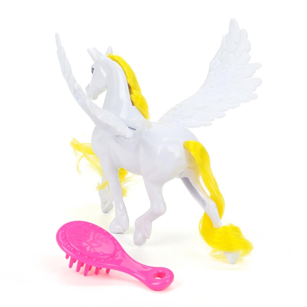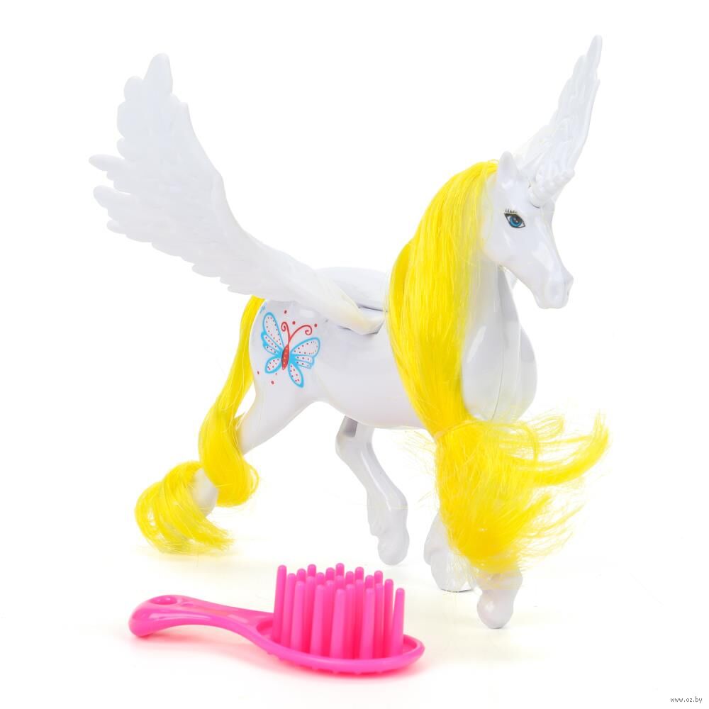 Этот интересный набор яркой расцветки непременно понравится вашей девочке и вдохновит её на увлекательные сюжеты для игр. Она с удовольствием будет придумывать для крылатого единорога увлекательные приключения и заботиться о нём. Для ухода за его прекрасной гривой и хвостом в наборе имеется специальная расчёска.