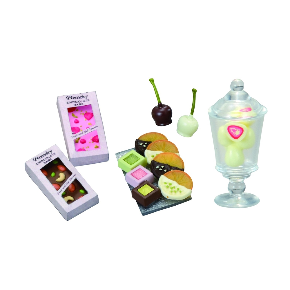 Миниатюрный мир сладостей: полки с шоколадом, конфетами и упаковками, от которых сложно оторваться. Атмосфера уютной шоколадной лавки прямо у вас дома. Детали из набора подойдут как дополнение к уже существующим интерьерам!