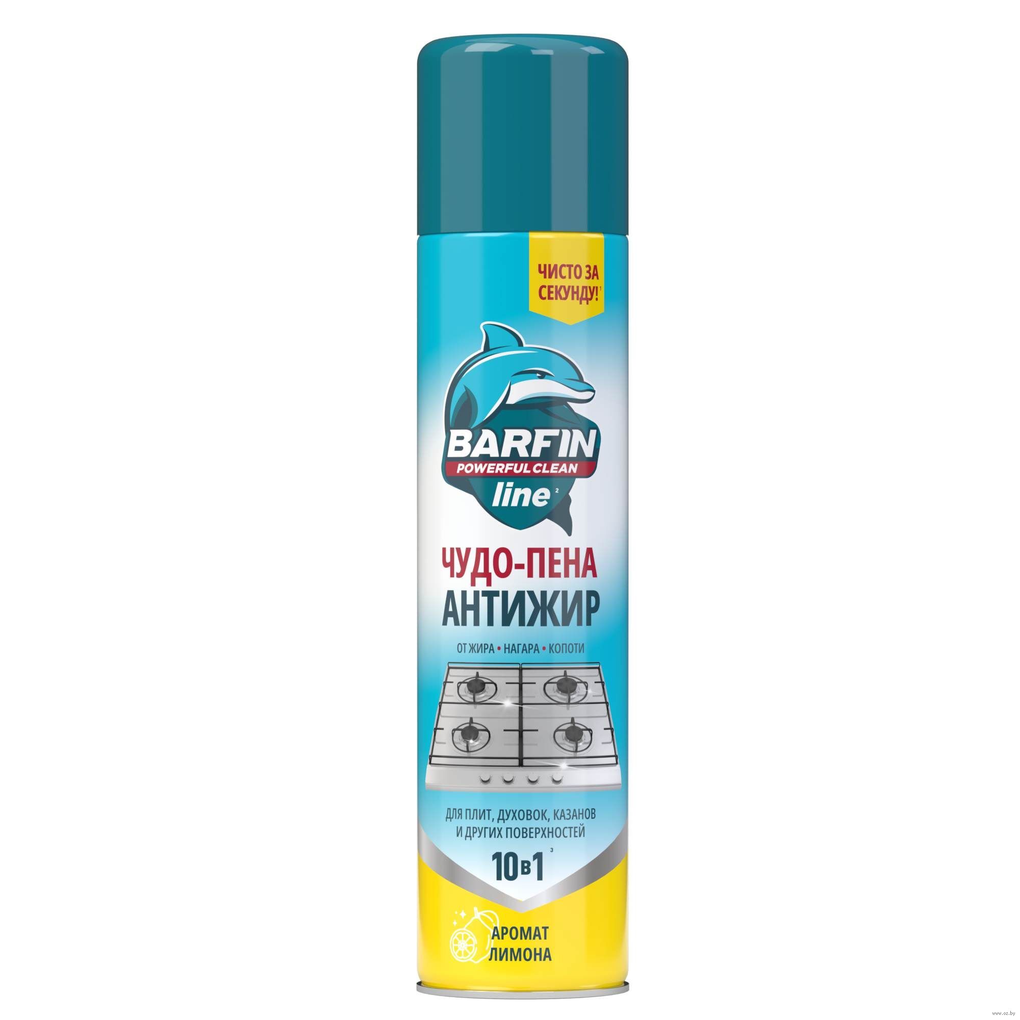 Интуитивная активация – не надо переворачивать флакон. BARFIN: 2 типа ПАВ + высокая концентрация щелочного компонента = высокая скорость удаления загрязнений Аэрозольный формат – формирование пены с длительным воздействием на загрязнения на вертикальных поверхностях. Пена не спекает со стенок духовок и посуды, как спрей, где время контакта очень маленькое для эффективного удаления сложных загрязнений.