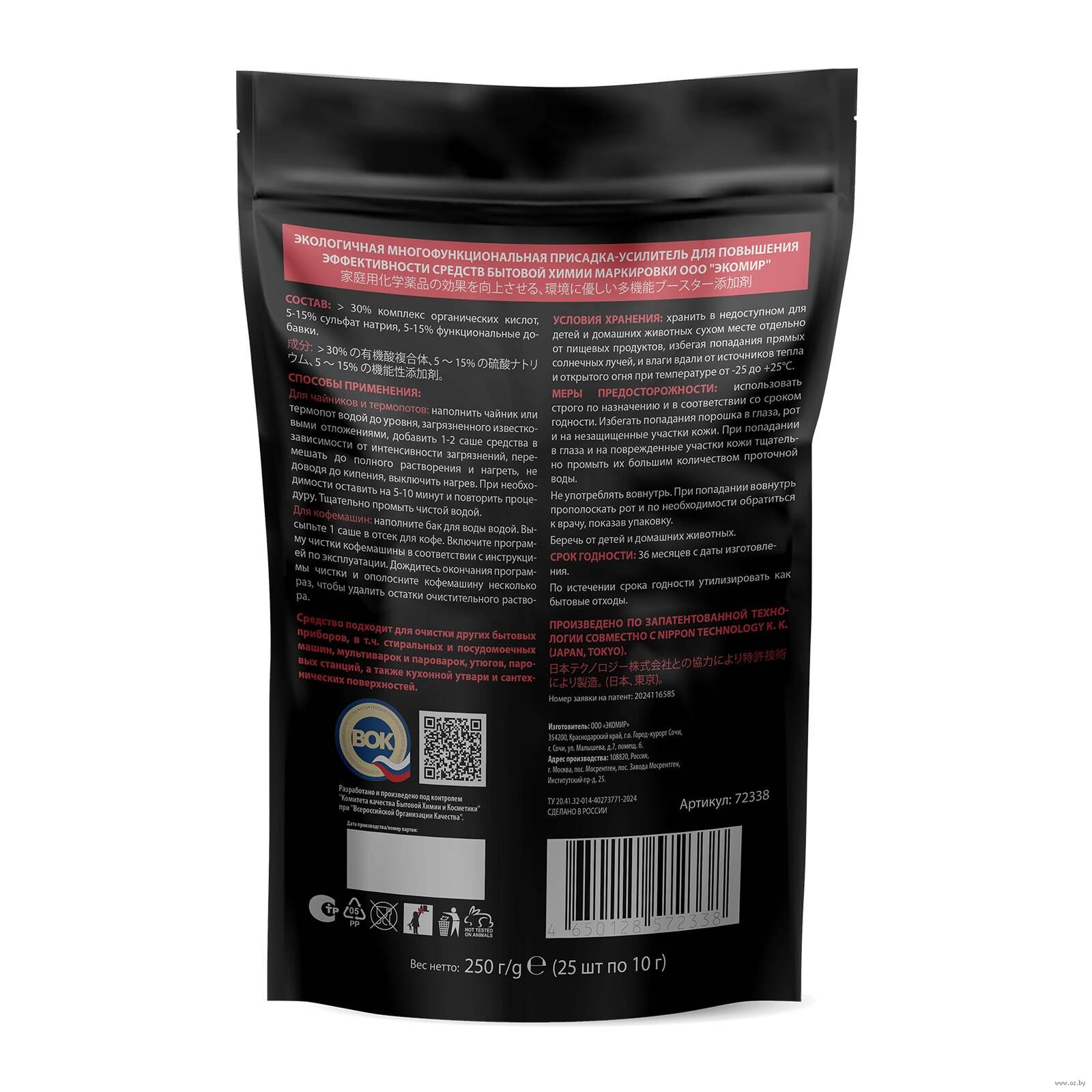 | Изготовитель | 0ОО "ЭКОМИР", 354200, Краснодарский край, городской окрут Город-курорт Сочи, г. Сочи, ул. Малышева, д. 7, помещ. 6 |