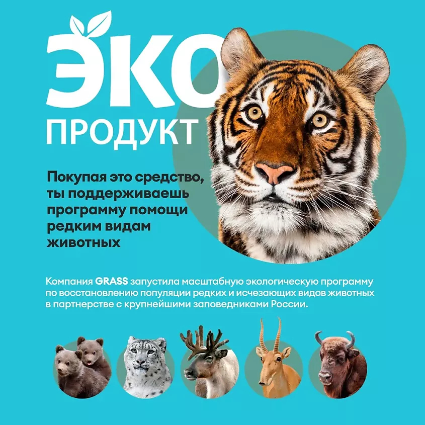 30% очищенная вода; <5%: биоразлагаемые н-ПАВ, органические растворители, биоразлагаемые амфотерные ПАВ, биоразлагаемый а-ПАВ, биоразлагаемый комплексообразователь, сода, щелочь, отдушка.