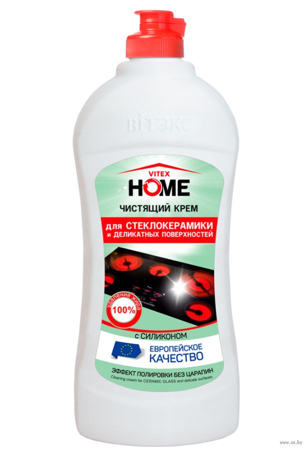 Специальные компоненты расщепляют даже сложные загрязнения (густой, засохший и пригоревший жир, остатки пищи, известковый налет и др.), позволяют легко очистить стеклокерамическую плиту и другие деликатные поверхности без царапин, придают сияющий блеск.