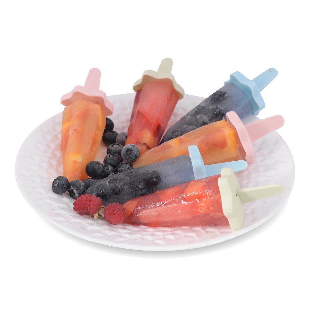 Домашний фруктовый лед или молочное, йогуртовое мороженое – это не только вкусное, но и полезное лакомство. Смешивайте любимые вкусы, фантазируйте, устраивайте эксперименты и радуйте своих близких угощением с формами для мороженого "Звездопад". Формы позволяют одновременно приготовить 6 порции освежающего десерта. Формы выполнены в оригинальном дизайне, крышки-палочки удобно держать в руках. Сама форма продумана так, чтобы мороженое было легко доставать. Перед первым использованием и после каждого применения вымыть губкой с жидким моющим средством, сполоснуть проточной водой и просушить. Можно мыть в посудомоечной машине.